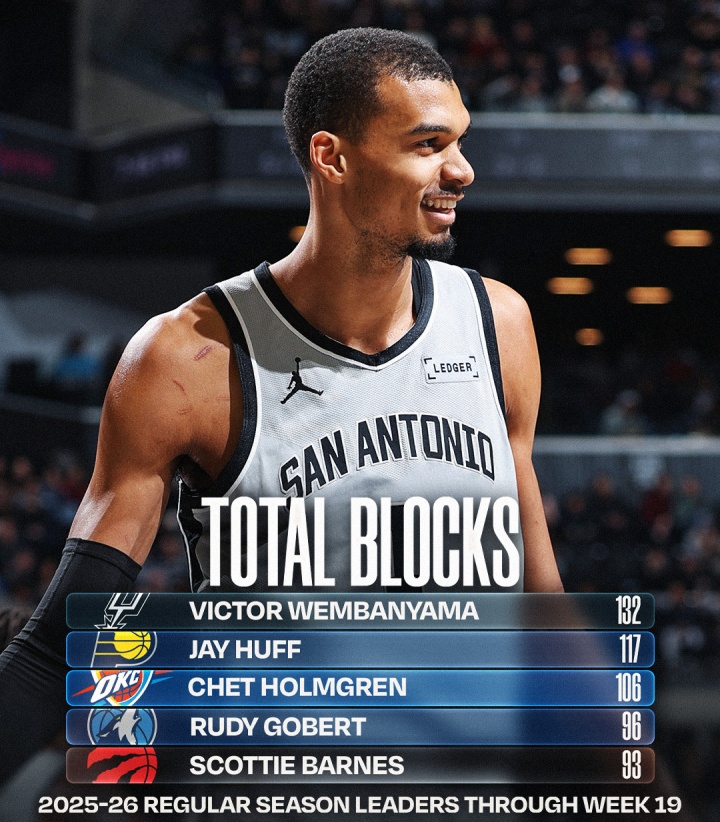 PP电子官方-NBA官方晒盖帽榜:文班总盖帽一骑绝尘 场均2.9帽无人能及