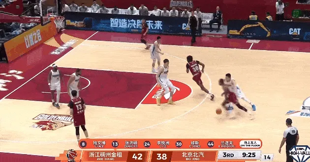 CBA常规赛,浙江对阵北京的比赛正在进行中。第三节比赛中,琼斯下顺起飞接球,在周琦头上完成双手空接暴扣。CBA常规赛,浙江对阵北京的比赛正在进行中。第三节比赛中,琼斯下顺起飞接球,在周琦头上完成双手空接暴扣。